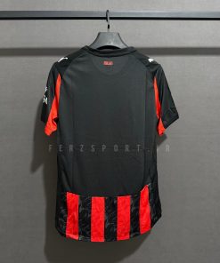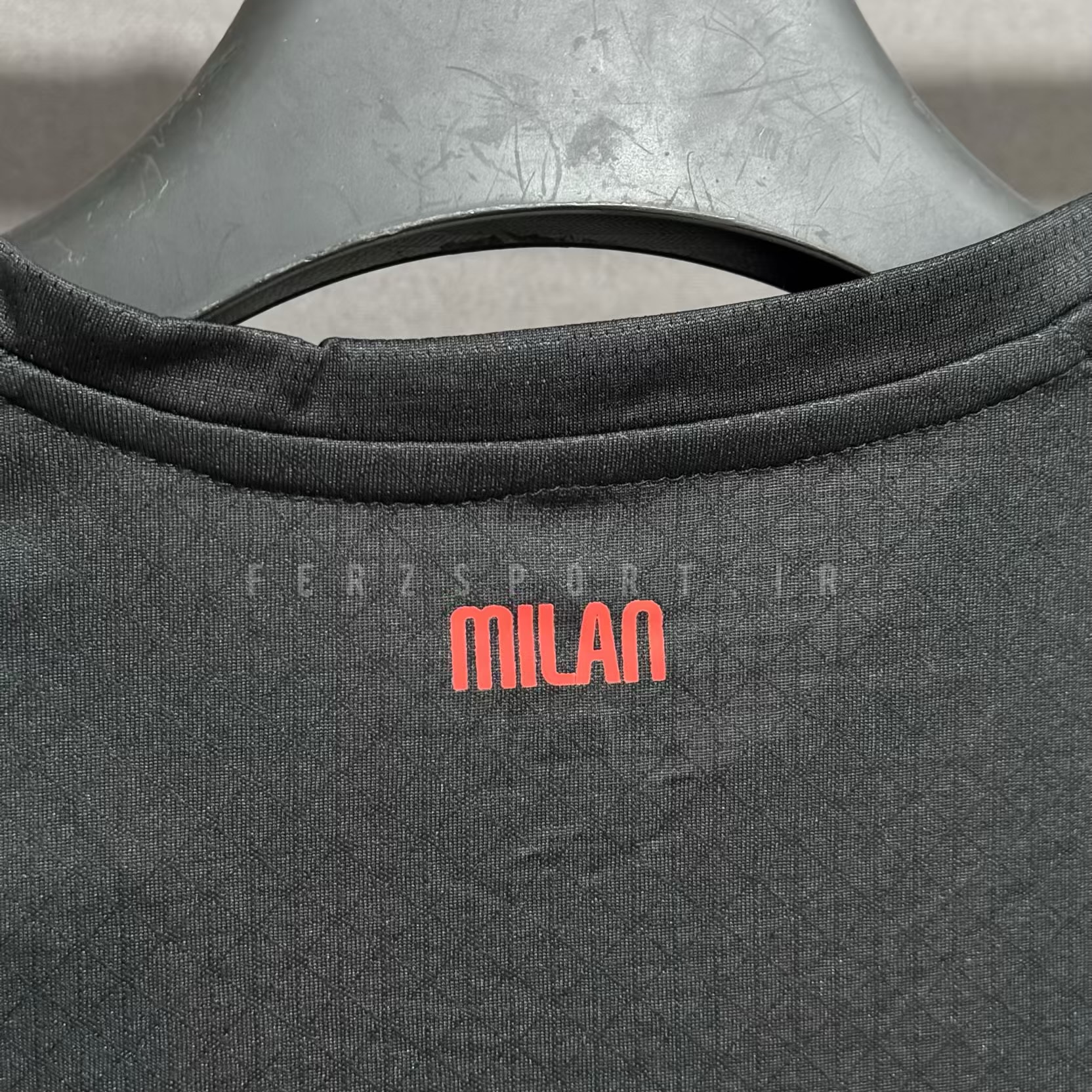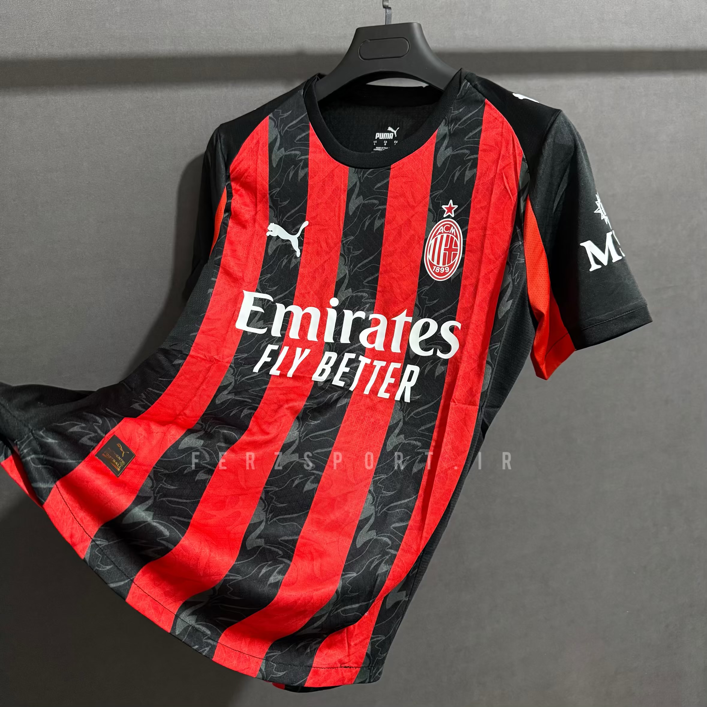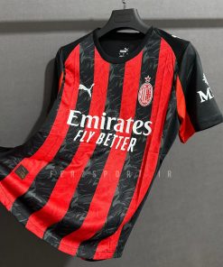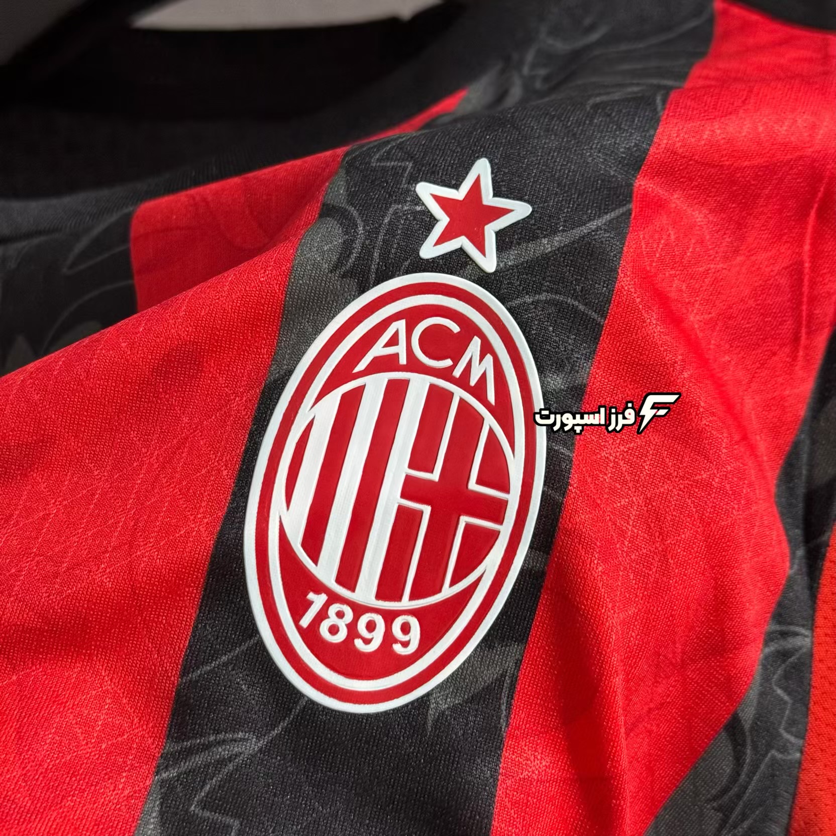 لباس اول میلان۲۰۲۶ کیت میلان برای فصل جدید مثل همیشه بصورت سنتی از طرح خطوط راه راه عمودی مشکی و قرمز برخوردار هست اما با یک تفاوت بسیار زیبا در عمق طرح، یک طرح طوسی رنگ شبیه به گل که فضای این کیت جدید آث میلان رو بسیار متفاوت و جذاب تر کرده