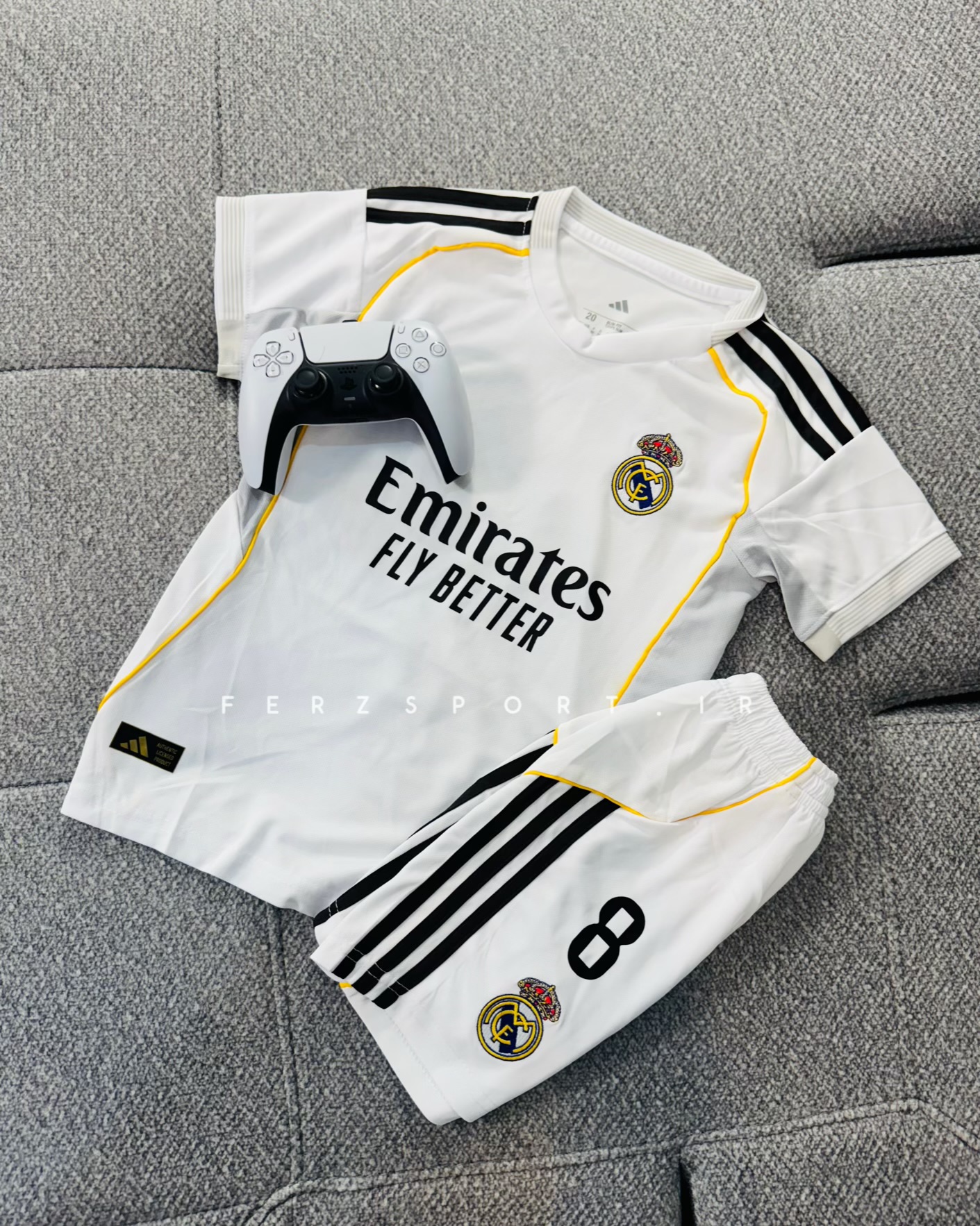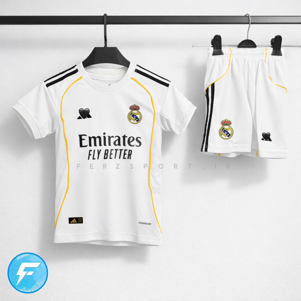 لباس فوتبال بچگانه اول رئال مادرید۲۰۲۶ رو با بالاترین کیفیت موجود یعنی ورژن کیت تایلندی با پارچه تنفسی و لوگو های پارچه گلدوزی شده برای بچه های فوتبالی عزیز ایران تو سایت فرز اسپورت موجود کردیم!!